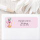 Un fond rose blush féminin, orné d'un ruban rose et d'un ananas. Personnalisez et ajoutez votre nom et adresse. Lettres noires.