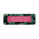 Les étiquettes d'adresse de retour chic et tropicales portent votre nom ou nom d'entreprise et votre adresse de retour en lettres blanches modernes sur un rectangle rose vif, placé sur un arrière - plan de feuilles botaniques de jungle verte vibrante.