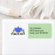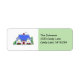 Une maison unique avec un toit bleu et une porte rouge figurait sur ce étiquette de adresse. Customisez avec toutes vos informations personnelles.