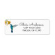Jolie étiquette d'adresse de retour avec un colibri à bec large et des fleurs jaunes.
