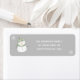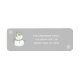 L'adresse de retour d'un mignon bonhomme de neige (par la conception d'hivers en étagère) comprend un bonhomme de neige portant un casquette vert et une écharpe sur un arrière - plan gris. Idéal pour les vacances et tout l'hiver.