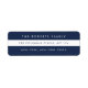 Les étiquettes d'adresse de retour bleu marine et blanc avec lettrage moderne.