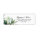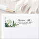 Cette étiquette de retour de calligraphie tropicale est parfaite pour un mariage simple. Le design est composé de feuilles tropicaux à dominante verte avec une touche de fleurs blanches roses, soigneusement disposées en élégantes couronnes et formes géométriques.