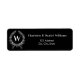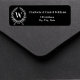 Arrière - plan noir. Décoré d'une couronne. Personnalisez et ajoutez votre nom, adresse et monogramme familial initial. Texte blanc.