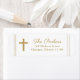 Un doux nom d'adresse de retour religieuse baptism avec un cadre de parties scintillant doré magnifique et croix détail avec texte éditable classique. Coordonner avec d'autres produits de la collection Classic or baptism par Stacey Meacham.