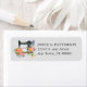 Sur cette étiquette d'adresse de retour, une machine à coudre à l'ancienne est entourée de bouquets fleuris dans les tons pêche, orange et jaune. Votre texte personnalisé est en gris foncé à droite. Une belle image rétro qui convient particulièrement à tous ceux qui aiment coudre !