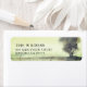 Aquarelle rustique seul arbre dans une prairie brumeuse, retourner les étiquettes d'adresse avec nom de famille et adresse. Simple inspiration nature.