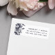 Élégantes étiquettes d'adresse de retour florales vintages avec des lettres bleues modernes de minuit avec une illustration d'orchidée de style vintage le long du côté gauche. Conçu pour coordonner avec notre collection de faire-part de mariage d'orchidées de minuit.