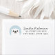 Étiquette d'adresse de retour portant un ours blanc polaire sur un arrière - plan circulaire bleu clair. Nom et adresse personnalisables.