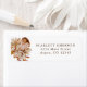 Cette élégante étiquette d'adresse de retour de mariage d'automne présente un beau cadre en feuille d'or véritable et des feuilles de couleur orange brûlé et de terracotta peintes à la main dans le style aquarelle boho, des dahlias crème et beige, et de belles roses de couleur rouille sur fond blanc. Trouvez des articles assortis dans la collection Mariage Automnal Romance.