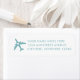 Une étiquette d'adresse de retour amusante avec un avion turquoise avec un centre coeur parfait pour tout mariage de destination, voyage, thème d'aviation, ou invitation de mariage de plage ou enregistrer la date. Choisissez les couleurs parfaites pour coordonner avec votre invitation de passeport, votre invitation de carte d'embarquement ou votre billet d'avion enregistrer les dates. NOTES DE CONCEPTION : Cliquez sur CUSTOMISER PLUS LOIN pour choisir de nouvelles couleurs pour la couleur de remplissage et l'arrière - plan de l'avion. La police et la couleur du texte peuvent également être modifiées.