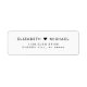 Étiquettes d'adresse de retour minimalistes et chic pour vos invitations de mariage, vos cartes de sauvegarde de date, vos faire-part de fiançailles, vos invitations à la fête de couple, vos cartes de remerciement et autre correspondance. Personnalisez votre monogramme avec vos noms réunis par un cœur et votre adresse de retour dans une typographie moderne simple.