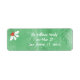 Personnalisez facilement ces étiquettes d'adresse de retour de vacances en quelques clics seulement. Ces autocollants d'adresses sont décorés de texte en écriture blanche sur un arrière - plan vert.