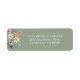 Ajoutez une touche botanique charmante à votre correspondance de mariage ou d'événement avec cette étiquette d'adresse de retour de mariage aux fleurs sauvages vert sauge. Avec un fond vert sauge doux, ce design élégant comprend un délicat bouquet de fleurs sauvages à l'aquarelle et un papillon à gauche, et un script blanc moderne personnalisable à droite avec le nom et l'adresse de la mariée.