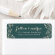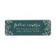 Conçues pour correspondre à notre collection d'invitation Delicate Frame en vert Jasper, ces élégantes étiquettes d'adresse de retour florales présentent un souffle de bébé roux et crème encadrant votre adresse de retour, sur un arrière - plan vert forêt riche en bijou.
