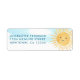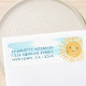 Cette étiquette d'adresse de retour baby shower est décorée d'une jolie aquarelle souriante soleil et d'un arrière - plan bleu ciel. Facile à personnaliser. Aquarelle originale © Michele Davies.