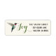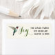 Étiquette d'adresse de retour du colibri de Noël avec un colibri à gorge rubis sur un arrière - plan couleur crème et le mot JOY. Personnalisez-le en ajoutant votre nom et votre adresse. Le style de police, la taille de police et la couleur peuvent être modifiés en cliquant sur "customiser plus loin".