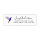 Élégante étiquette d'adresse de retour personnalisée avec un colibri violet sur un arrière - plan blanc.