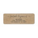 Élégant lié par les étiquettes de retour de la famille d'amour avec les noms de couple de script cursifs connectés au milieu par un coeur tourbillonnant. Accompagné d'un nom de famille et d'une adresse imprimés. Un style brun rustique. Jolie famille de retour d'adresse pour les jeunes mariés et tous les autres couples fortement liés par l'amour.