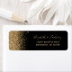 Le bord gauche de cette élégante étiquette d'adresse de retour mariage moderne présente une conception de parties scintillant en faux or. Le texte personnalisable combine écriture manuscrite couleur or pâle, cuivre et polices italiques sur un arrière - plan noir.