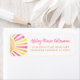 Un petit rayon de soleil Étiquette de adresse. Ce étiquette de adresse lumineux et gai est la touche finale parfaite pour envoyer des invitations d'anniversaire de baby shower ou "Premier voyage autour du soleil". Le design se caractérise par un soleil éclatant sur le côté gauche, avec des rayons colorés dans un mélange neutre entre le jaune, l'orange, le rouge, le turquoise et le bleu, ajoutant une touche ludique et joyeuse. A droite, les détails de l'adresse sont affichés dans un mélange de polices turquoises et orange, créant un look frais et animé. Entièrement personnalisable, vous pouvez mettre à jour le texte, les polices et les couleurs en fonction du thème de votre événement. Une façon amusante et festive d'envoyer vos invitations spéciales de célébration!