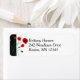 Cette étiquette personnalisée d'adresse de retour florale noire et blanche contient des pavots rouges et du feuillage vert qui correspondent au faire-part de mariage ci-dessous.