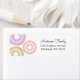 Saupoudrer la maman d'être en invitant des êtres chers à un baby shower. Correspondant à nos invitations pour l'arrosage de bébé beignes, ces étiquettes d'adresse de retour évitent le tracas de la main adressant vos enveloppes. Avec des beignets saupoudrés roses et violets. Remplissez votre libellé à l'aide de la zone "Personnaliser" située à droite de l'élément, ou cliquez sur le lien bleu "Cliquez pour Customiser plus loin" pour arranger le texte, modifier les polices et les couleurs et ajouter des informations ou des images supplémentaires à cette conception.
