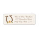 UN ÉTIQUETTE DE ADRESSE À THÈME OCCIDENTAL MILITAIRE ET PAYS AVEC UN HORSESHOE BROWN ET JAUNE ET UN DESIGN SOUFFLE BROWN SUR UN ARRIÈRE - PLAN DE PINSTRIPE DIAGONAL CRÈME ET BLANC. PARFAIT POUR UN PAYS FERME FERME EXTÉRIEURE OU DE GRILLE COUPLES THÈME MARIAGE OU FÊTE DES MARIÉES, ANNIVERSAIRE, PARTICIPANT OU TOUT AUTRE ÉVÉNEMENT SPÉCIAL À THÈME SIMILAIRE. L'OEUVRE SUR CES ÉTIQUETTES D'ADRESSE DE RETOUR DE STYLE RUSTIQUE ET LES ÉTIQUETTES EST © CHRISSY H. STUDIOS, LLC. Tous droits réservés.