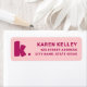 Étiquettes d'adresse de retour couleur rose ou personnalisée avec votre monogramme initial en gros caractères gras. Les polices et les couleurs peuvent être customisées avec l'outil de conception.