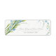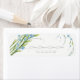 Retourner Étiquette d'adresse avec un élégant bouquet de fleurs bleu clair-me-pas avec des feuilles vert clair et des tiges courbées, des couleurs pastel naturelles printemps ou été, un bouquet de lumière romantique de fleurs sauvages. Aquarelle numérique botanique. Jolie botanique de fleur Retourner l'étiquette d'adresse. Oublie-Moi-Pas Collection.