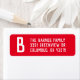 Cette simple étiquette d'adresse de retour rouge comporte une grande initiale avec le nom et l'adresse et se coordonne parfaitement avec la collection de cartes de vacances Lea Delaveris Design Nice List Pro Tip. Cette simple étiquette d'adresse de retour est parfaite pour les cartes de fin de année, les cartes de Noël et plus encore. Avec son type rustique simple, cet autocollant rouge peut être personnalisé ou mis à jour avec votre choix de police ou de couleur. Trouvez les cartes correspondantes et plus dans la collection.