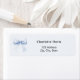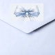 Un fond de couleur bleu clair décoré d'un grand nœud. Personnalisez et ajoutez votre nom et adresse. Lettres noires.