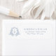 Ces étiquettes d'adresse de retour Blue Traditional Monogram Crest Floral Elegant Wedding présentent une élégante crête de monogramme botanique vintage avec des vignes délicates et des accents floraux.