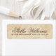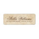 Étiquettes d'adresse de retour élégantes avec votre nom dans une police de caractère calligraphique élégante et l'adresse ci-dessous sur un fond de papier vintage.