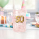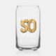 Cheers to 50 years birthday can glass featuring a fifty gold hellium balloon, and a simple text template that is easy to personalize.
