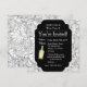 Customize this cute, adult colouring and wine party invitation and have some stress relieving fun! Floral pattern on the back can be used for colouring too! Black and white line art background pattern. Customizable text on front of invitation. Black scalloped frame for text and cute, smiling, green wine bottle on front left.