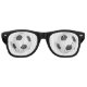 Adult party sunglasses are shown in the black frames with a sports soccer ball print on the lenses.