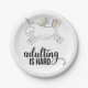 Whimsical galloping unicorn with "adulting is hard" in script font