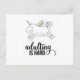 Whimsical galloping unicorn with "adulting is hard" in script font