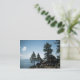 A photograph of a group of pine trees on a rocky hill over looking Lake Tahoe.