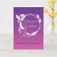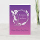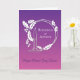 A single candle outline is on a white outline of a wreath, represents the Catholic Advent wreath. Purple to pink gradient on the background is prominent, symbolizing the 3 purple candles and one pink candle. At the bottom is written in beautiful script the three words; Hope, Peace, Joy, Love. Beautiful card to send as we wait in joyful hope this Advent.
