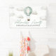 Fêtez l'arrivée prochaine avec notre bannière de Baby shower "Adventure Await" neutre pour le genre. Dotée d'une charmante montgolfière verte flottant parmi des nuages blancs doux sur un arrière - plan blanc propre, cette bannière ajoute une touche fantaisiste et aventureuse à votre décor de fête. Parfait pour donner le ton et créer une ambiance joyeuse pour votre fête de baby shower ! BBS385