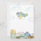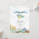 Cute whimsical airplane pilor baby shower theme, design feature watercolor vintage town and blue and yellow aviator over the the sky with "Adventure Awaits" text, perfect for baby boy and girl baby shower. you can customize your own text and colour.
