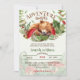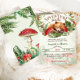 "Adventure Awaits" themed baby shower invite features a sleepy baby bear nestled within a lush botanical wreath, surrounded by ferns and whimsical red mushrooms. Gender-neutral and enchanting, it captures the beauty of nature's embrace for your baby shower celebration. Don't forget to discover the full collection.