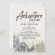 This chic "adventure awaits" drive-by/drive-thru baby shower invitation features a cream white background with a brown bear and a deer in a forest in the mountain. The reverse side features a wood background. Personalize for your needs. You can find more matching products at my store.