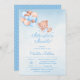 Adventure Awaits Blue Balloon Baby Shower Invitation, a fun way to celebrate the arrival of your little one. Invite friends and family to join in on the celebration with this cute teddy bear floating through the air with balloons, The blue, polka-dotted background is the perfect compliment to this boys baby shower invitation. This product includes an invitation and envelope, Your guests will enjoy the bright colours of this product! .Use easy template to add your party details.