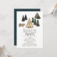 This cute "adventure awaits" boy virtual/zoom/online baby shower invitation features a white background with a tent, a bear, trees and mountains. The reverse side features a navy blue background with wood patterns. Personalize it for your needs. You can find matching products at my store.
