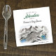 This baby shower paper napkin offers an adventure theme showcasing a watercolor wilderness landscape of mountains, ponds and pine trees. This is perfect for your rustic or outdoor event.