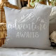 Adventure Awaits Wilderness Quote Grey Throw Pillow