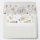 Complete your travel-themed baby shower suite with this coordinating envelope featuring a vintage world map liner, compass stamp, footprints, and personalized return address. Perfect for “Adventure Awaits” baby showers or destination events, this envelope adds a polished, global touch to your invitations.